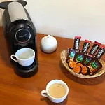 Deze accommodatie heeft een terras en een zitruimte, evenals uitzicht over de tuin en is ingericht met een bank. Dankzij wi-fi en een satelliet-TV kunnen gasten ook genieten van hun vrije tijd. De badkamer is voorzien van een inloopdouche en een apart toilet samen met een haardroger en badlakens.
